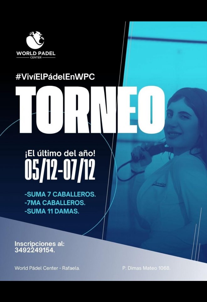 »» Evento: TORNEO WORLD PADEL CENTER RAFAELA »» Localidad: Rafaela »» Fechas: 05/12/2025 al 07/12/2025